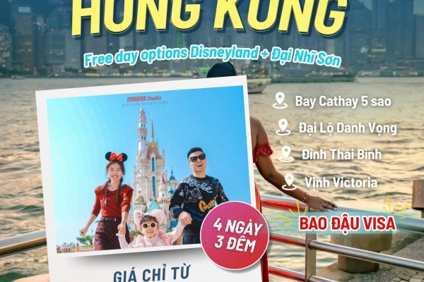 Bao gồm: Vé máy bay khứ hồi, khách sạn, visa Hong Kong, vé vào Disneyland 1 ngày, hướng dẫn viên, bảo hiểm, ăn uống...
